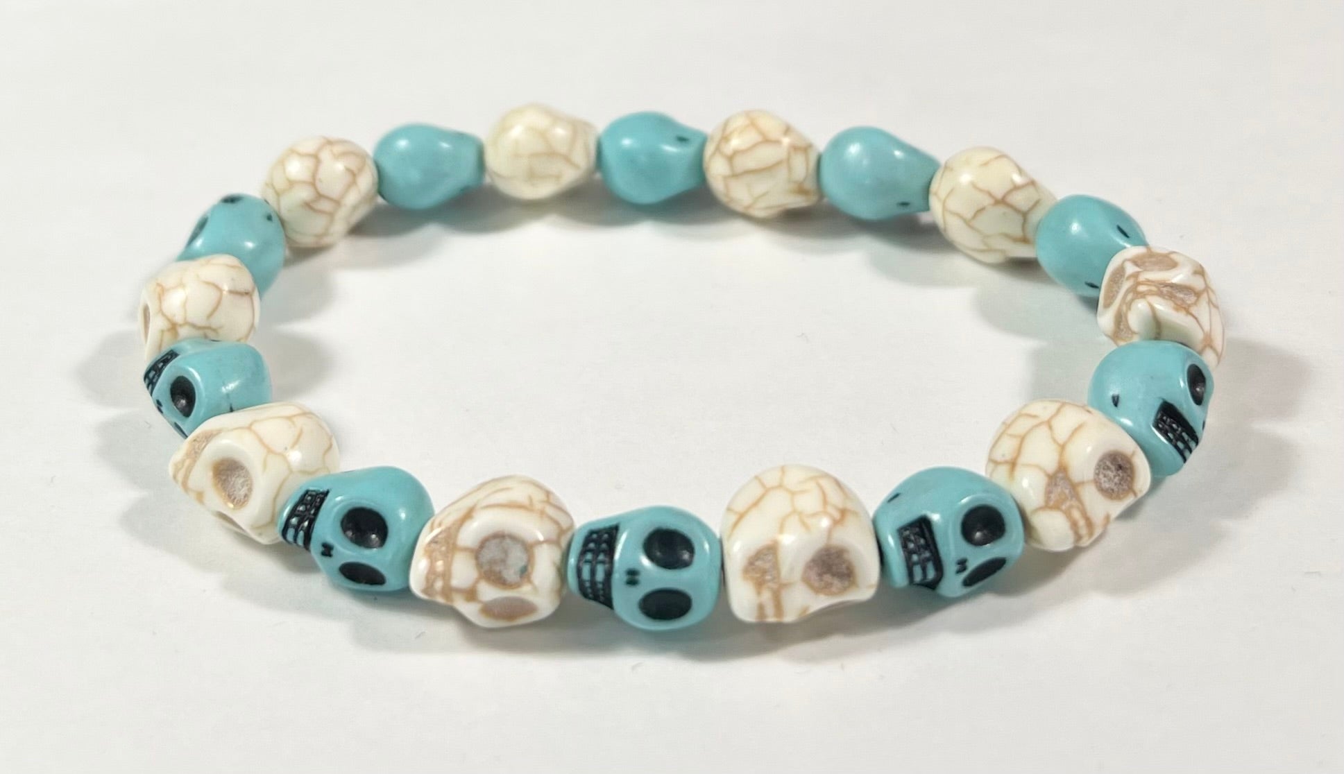 The “Bone” in these bracelets is actually Howlite. I just like how they look like bone.