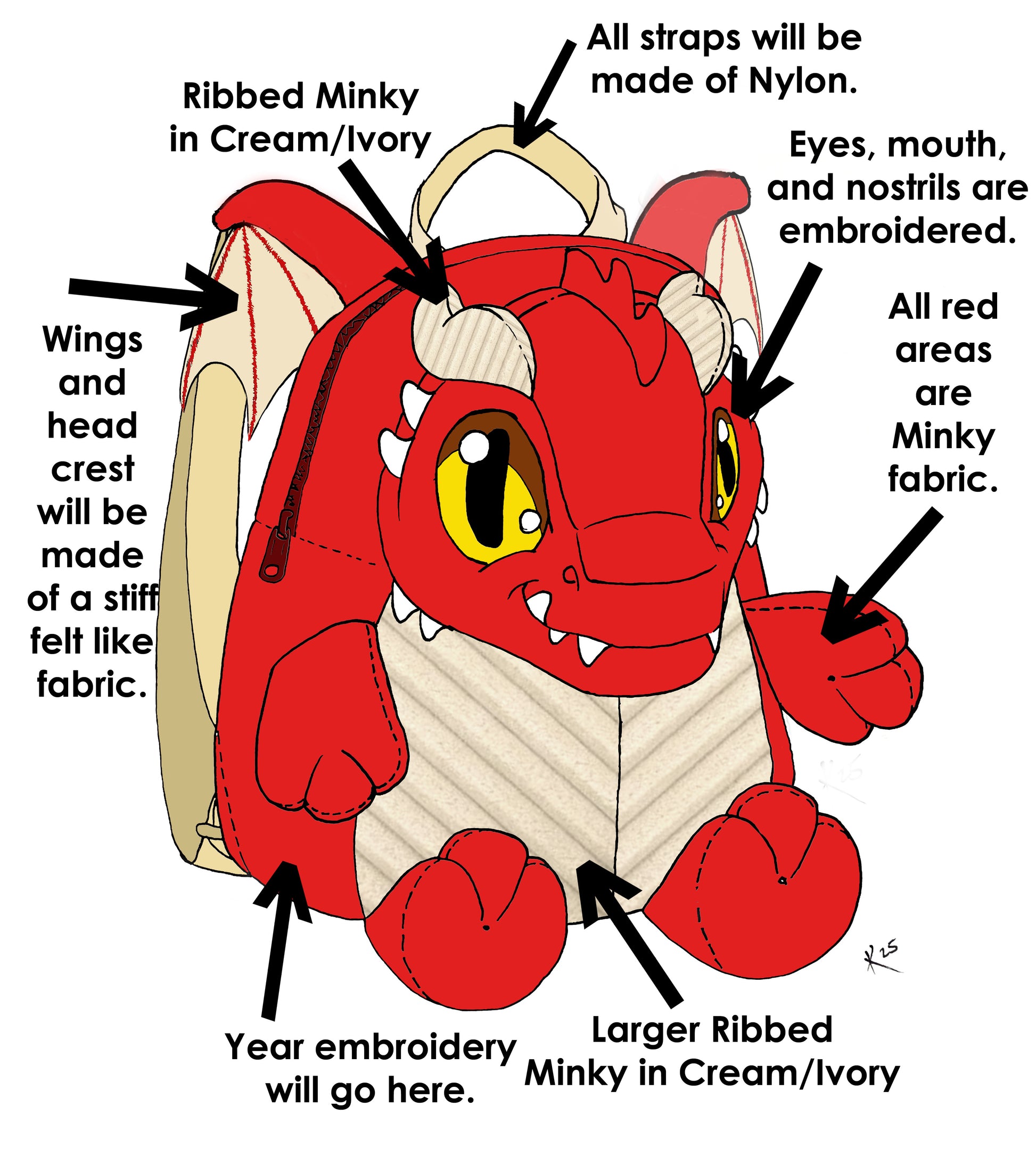 ~ The Dragon part of the bag is made with quality Minky fabric, with her belly and horns being made with a ribbed minky.