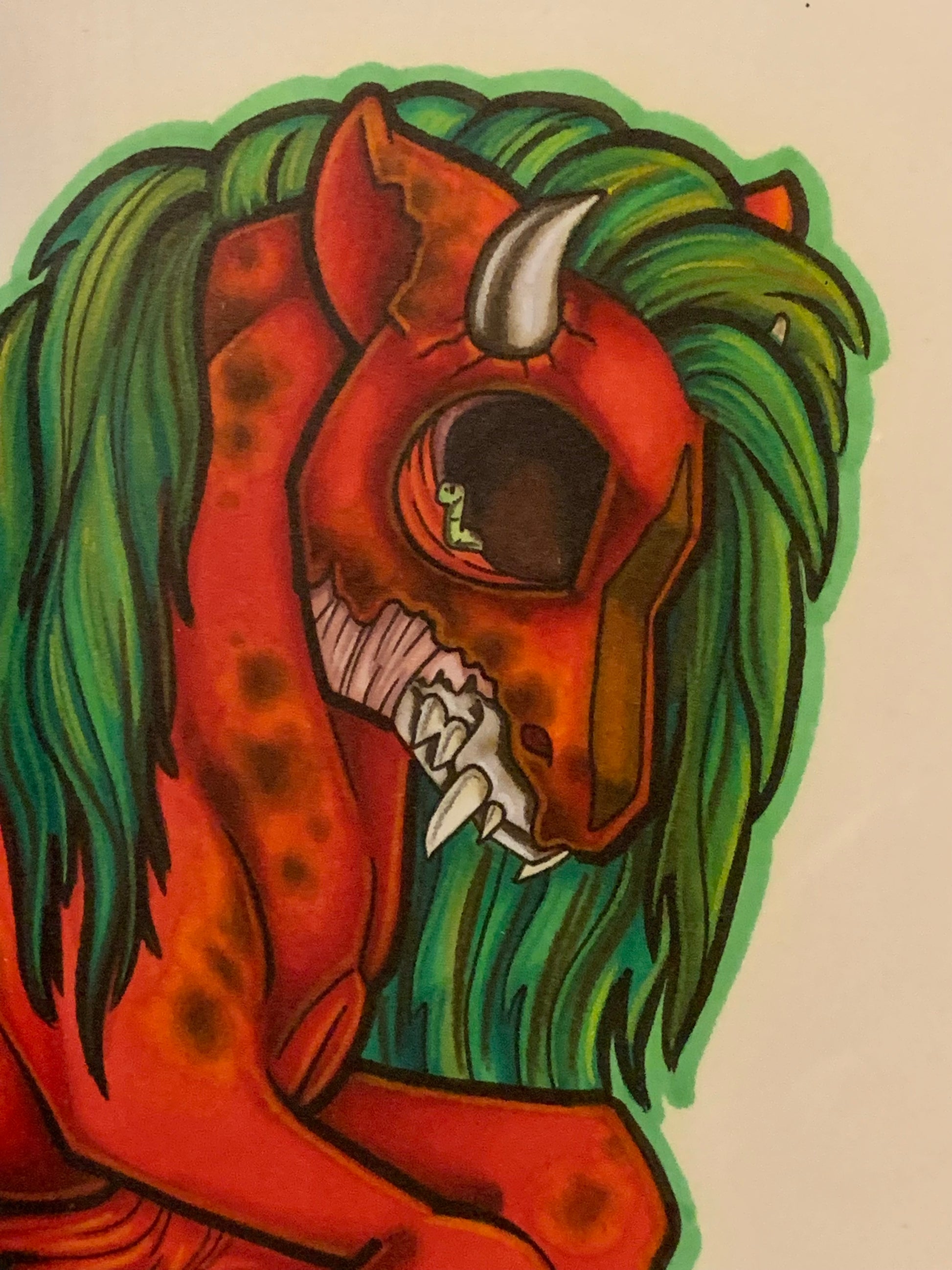 8.5" x 11" Prismacolor markers, colored pencils, and ink on Arches HP watercolor paper, matted and framed to 16" x 20".
