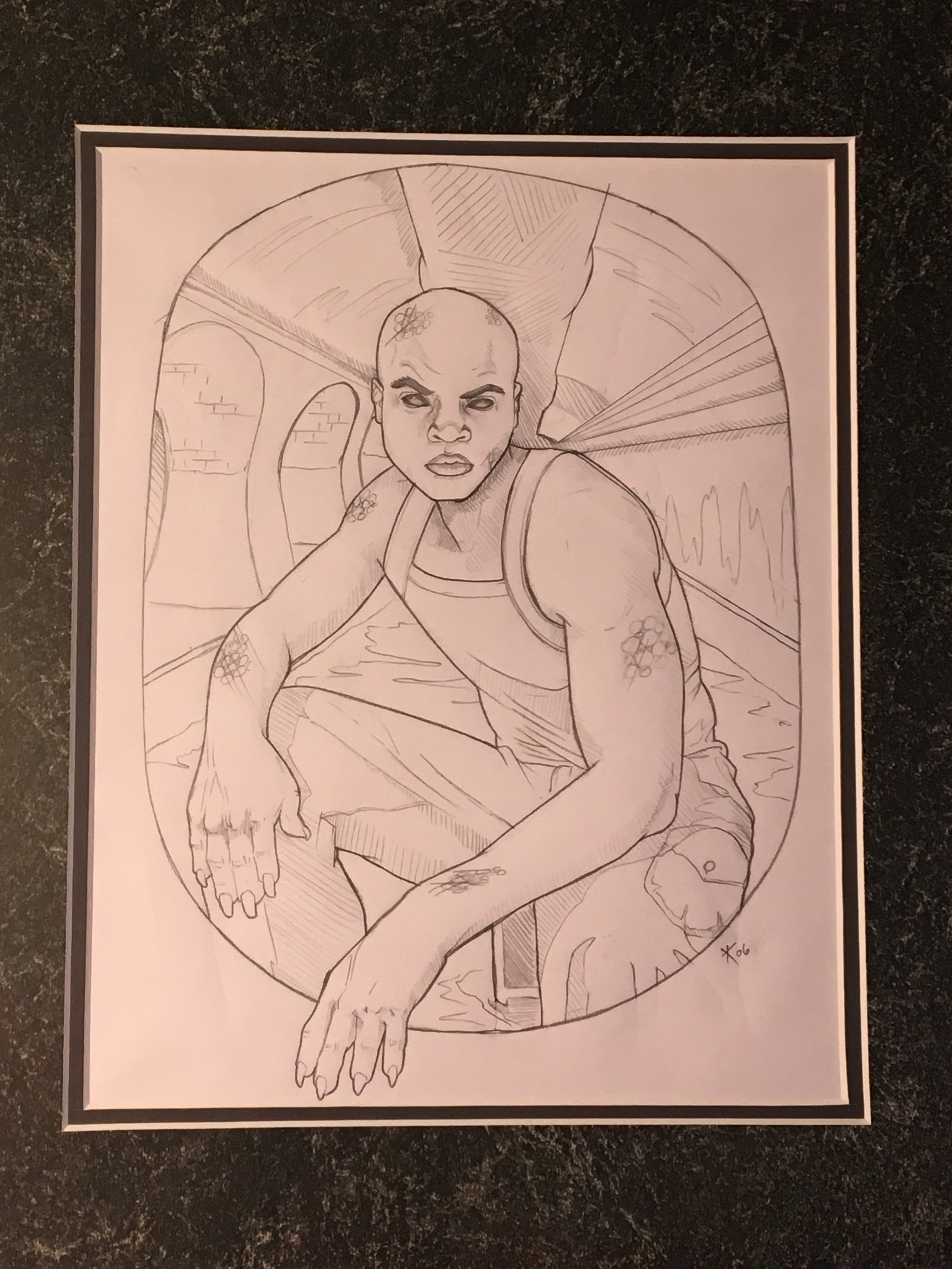8" x 10" Prismacolor markers, graphite, and white charcoal double matted to 11" x 14"