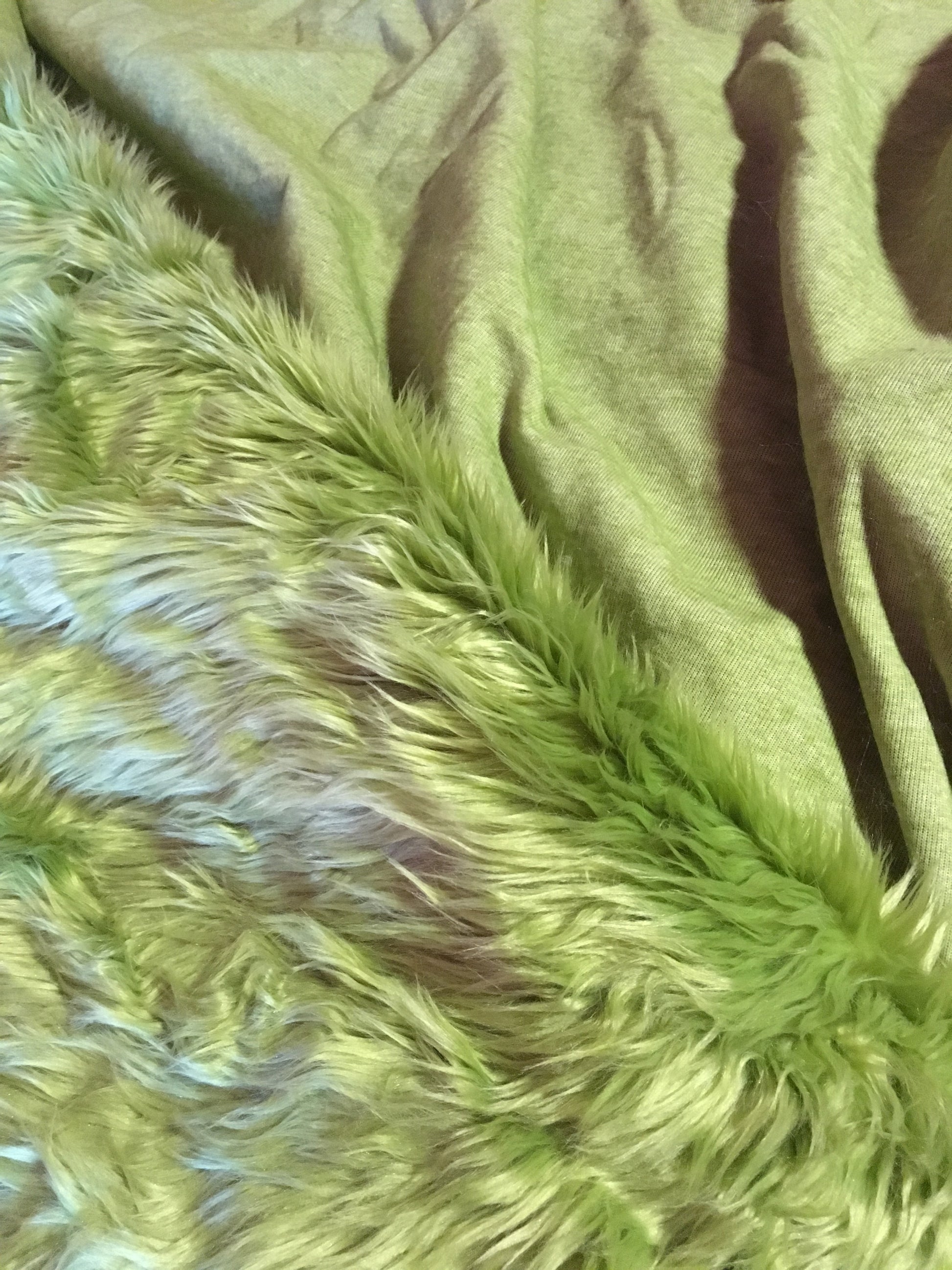 OLIVE GREEN Long Pile Faux Fur