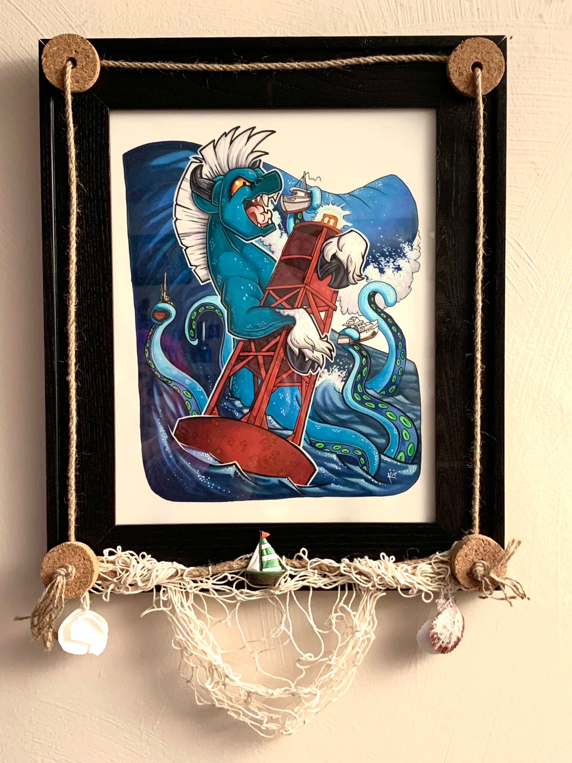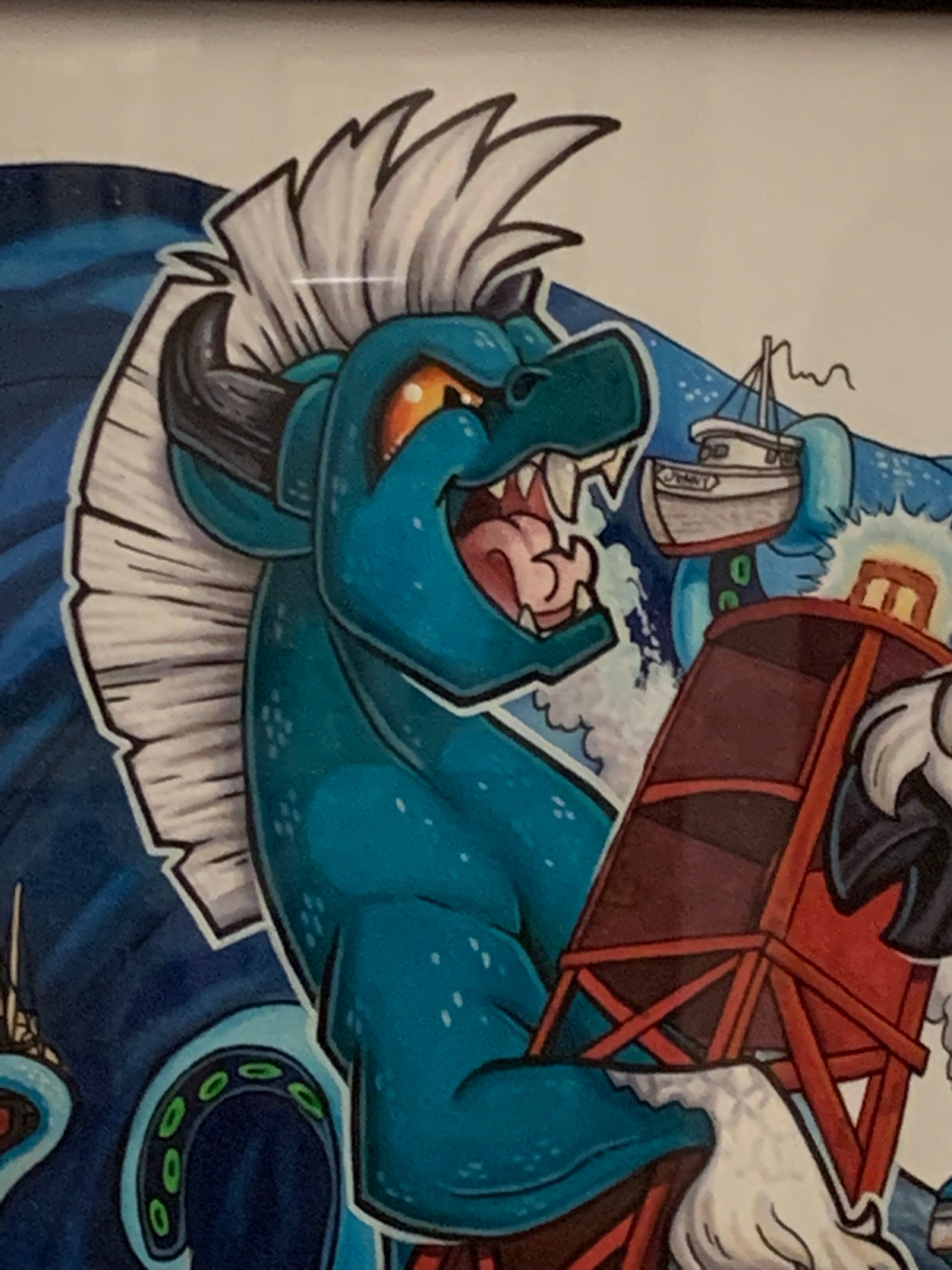 Tsunami Nomnom is one of my oldest ideas, but just never got around to creating him. He enjoys an afternoon snack of boats/ships and their occupants. He is seen here about to sample the Orca, Jenny, and S.S. Minnow.