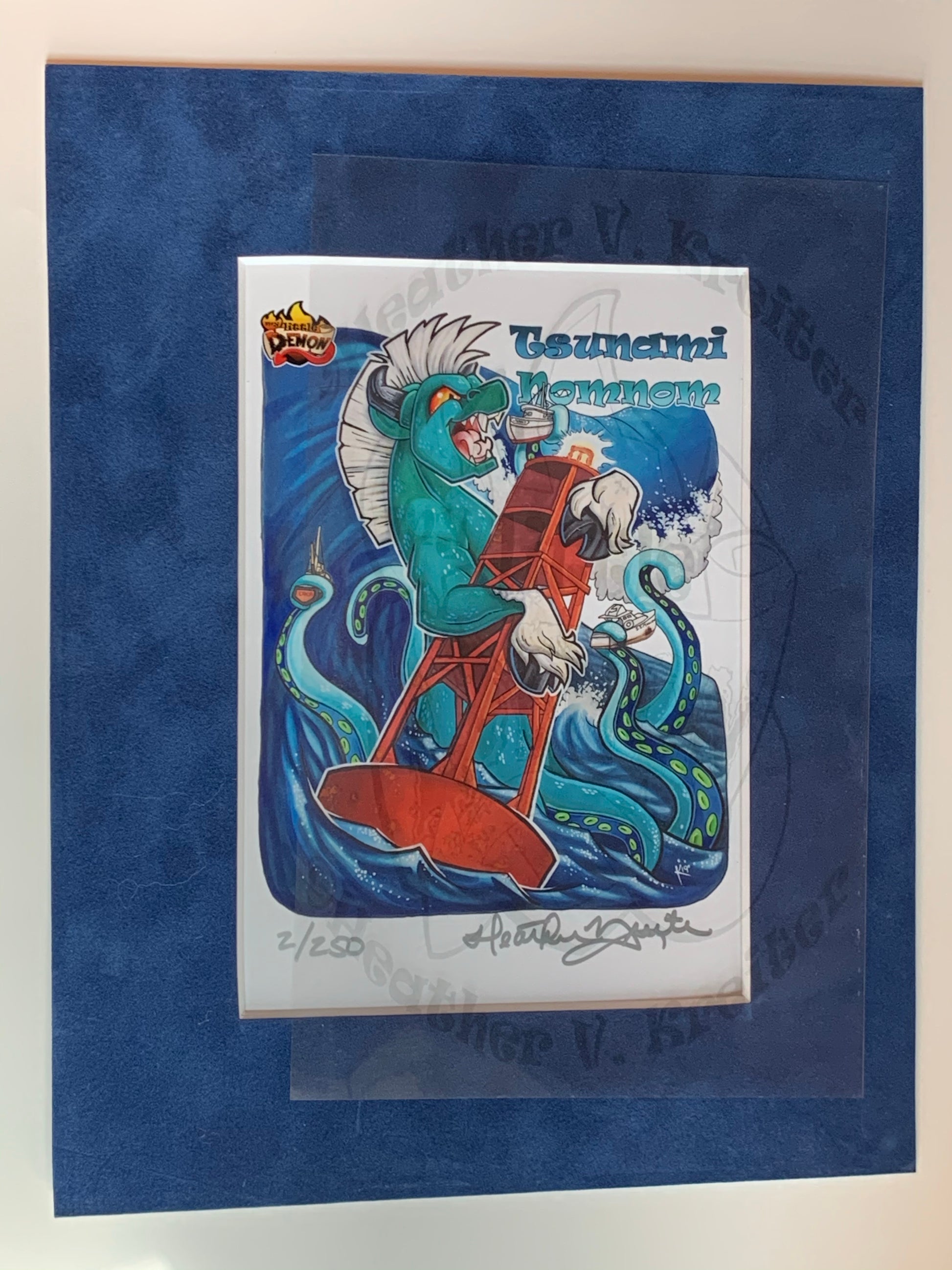 - Matted Prints - 5" x 7" Limited Edition Archival Glossy Prints matted to 8" x 10", hand signed and numbered (LE to 250), come sealed in a clear plastic sleeve on an acid free backing board.