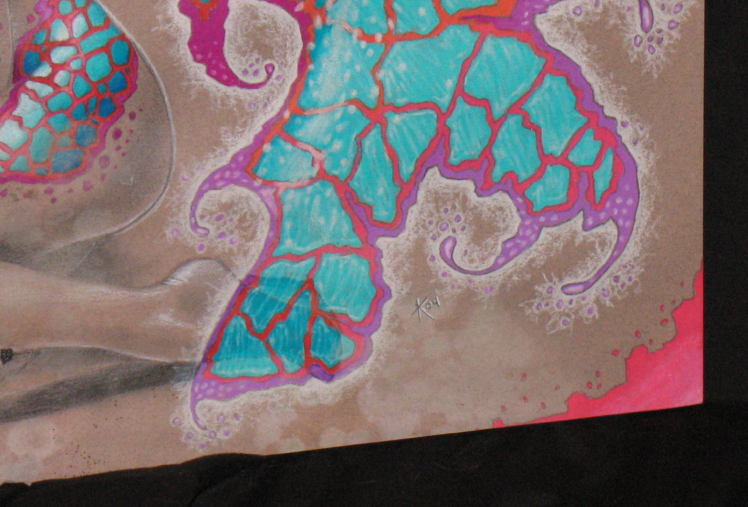 Elektra Pink *WATER DAMAGED*: 16″ x 19″ Prismacolor colored pencil, and graphite. The piece of art has been water damaged at the bottom of the piece (see additional photos) and is stuck to it's foamcore backing. I didn't want to risk further damage by attempting to remove it.
