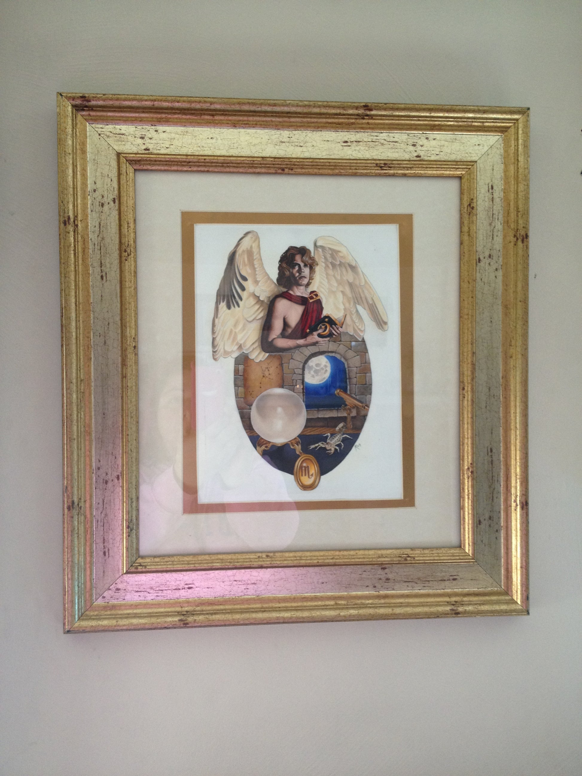 Angel of Scorpio: 8.5" x 11 Oil painting on gessoed watercolor paper double matted and framed to approx. 16" x 20"