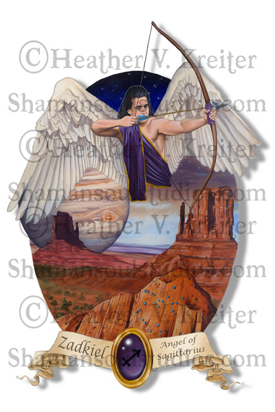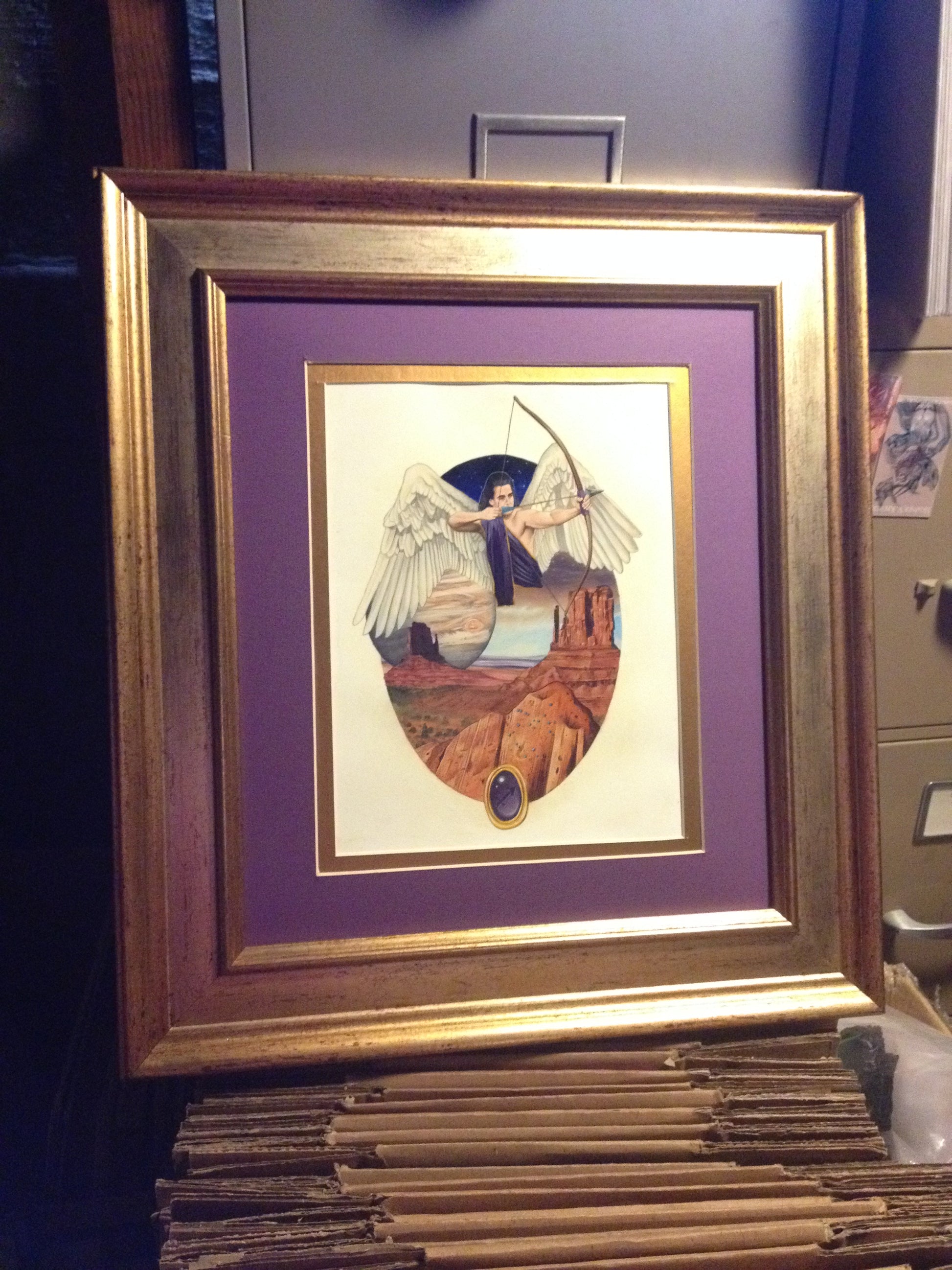 Angel of Sagittarius: 8.5" x 11 Oil painting on gessoed watercolor paper double matted and framed to approx. 16" x 20"