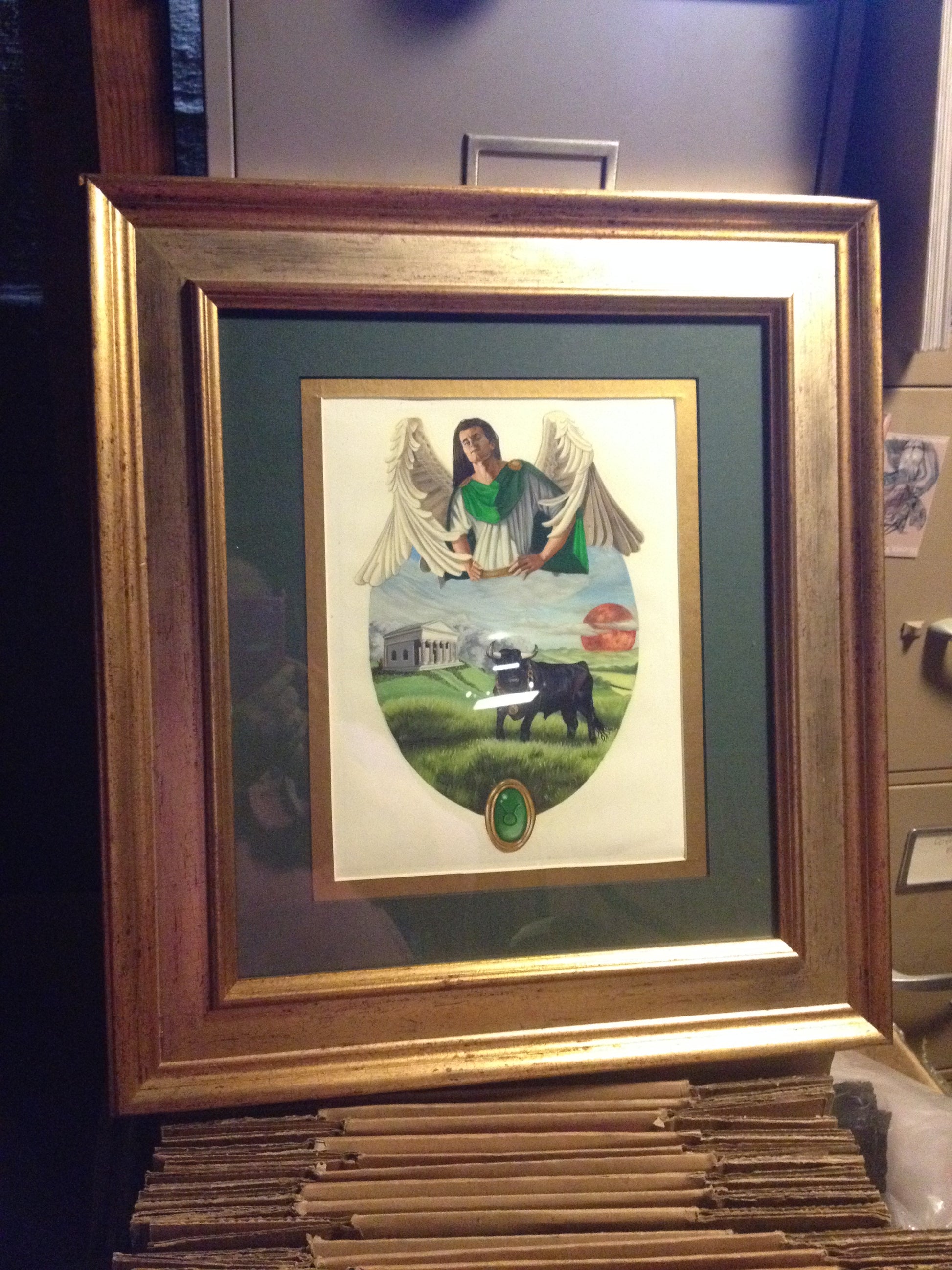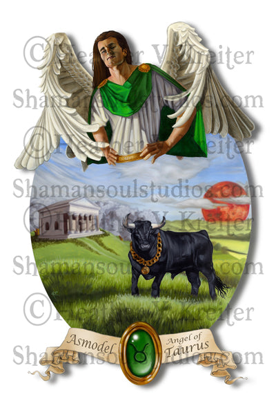 Angel of Taurus: 8.5" x 11 Oil painting on gessoed watercolor paper double matted and framed to approx. 16" x 20"