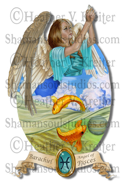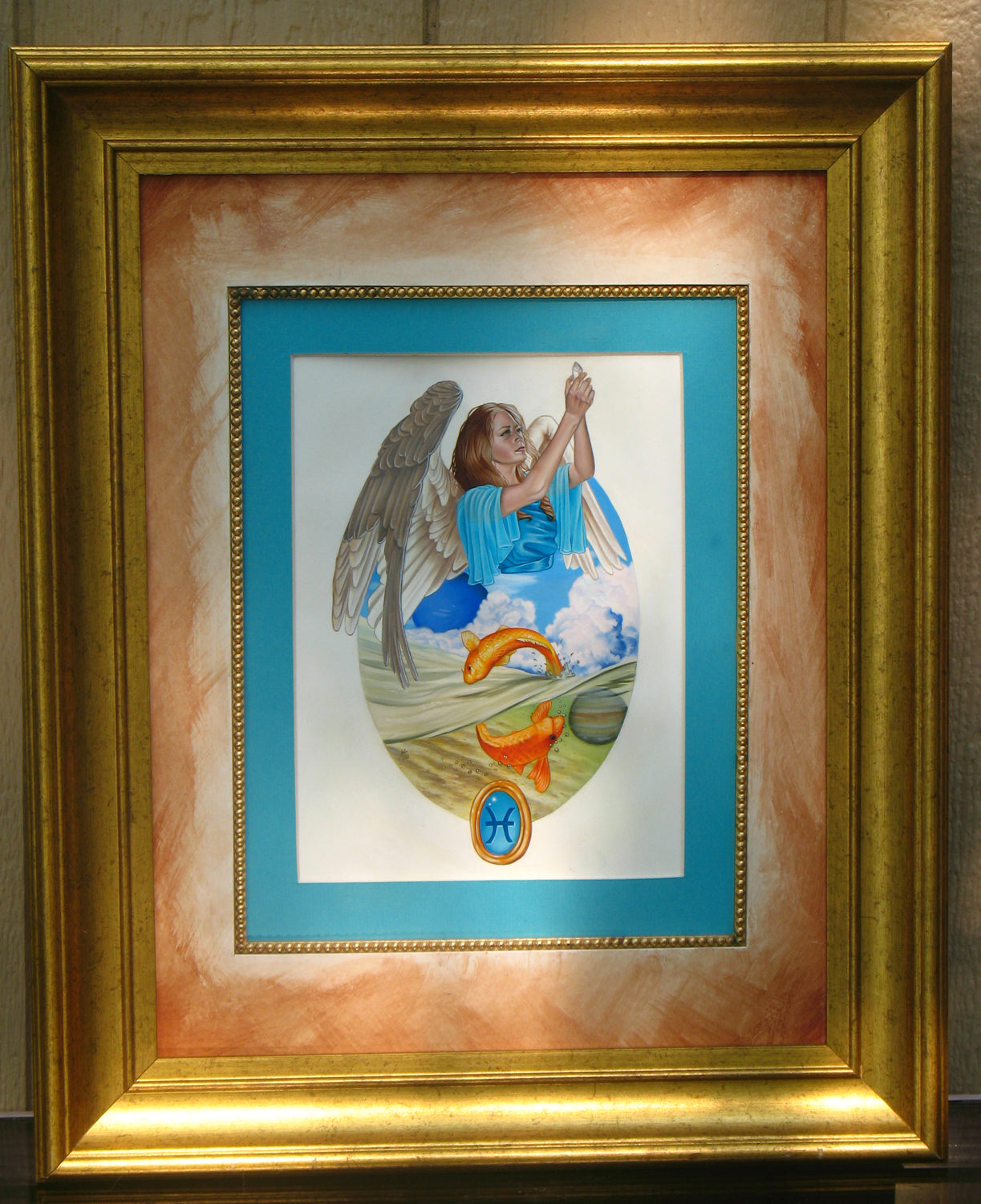 Angel of Pisces: 8.5" x 11 Oil painting on gessoed watercolor paper double matted and framed to approx. 16" x 20"