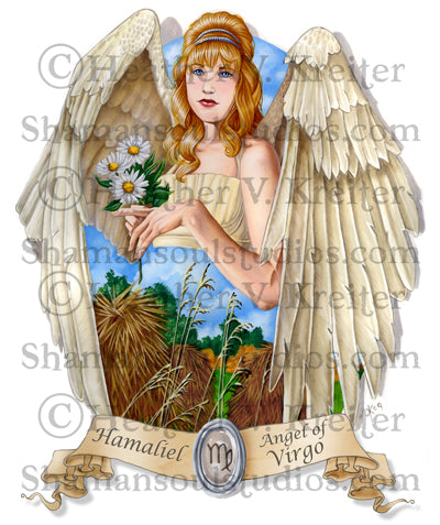 Angel of Virgo: 8.5" x 11 Oil painting on gessoed watercolor paper double matted and framed to approx. 16" x 20"