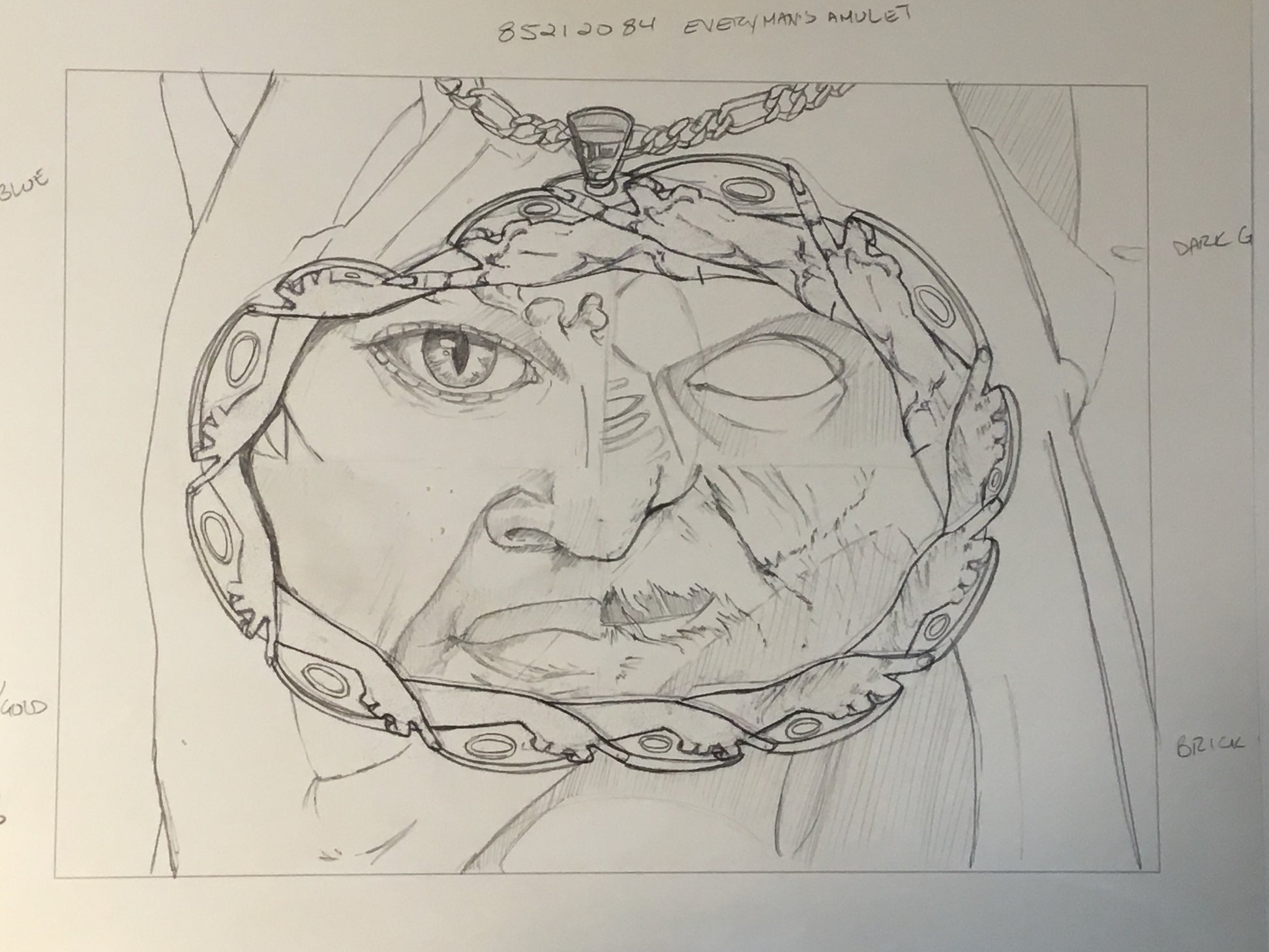 Everyman's Amulet Sketch: 6" x 8" Graphite on marker paper