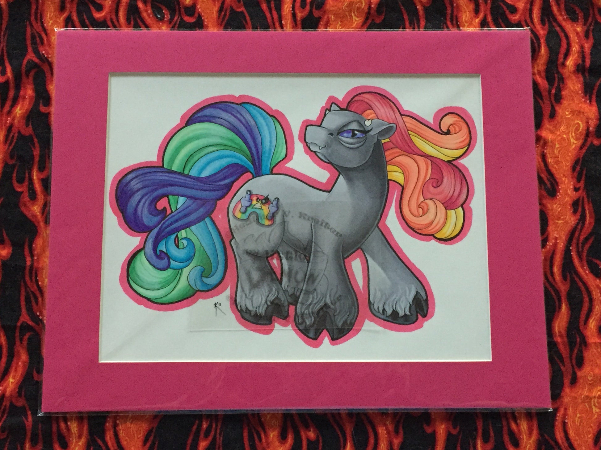 8.5″ x 11″ matted to 11" x 14". Original is created with Prismacolor markers, colored pencils, and ink on Arches HP watercolor paper. Comes sealed in a clear plastic sleeve on an acid free backing board. Also comes with a Certificate of Authenticity.